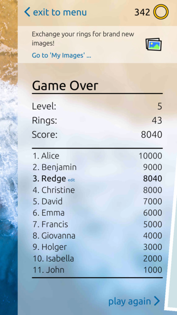 Just like the original on the beloved "PHOTO PLAY" terminal, this is a game for all ages: find four differences between two images – and be fast for a good rank on the leaderboard! With each find you'll be earning golden rings that can be exchanged for new images.